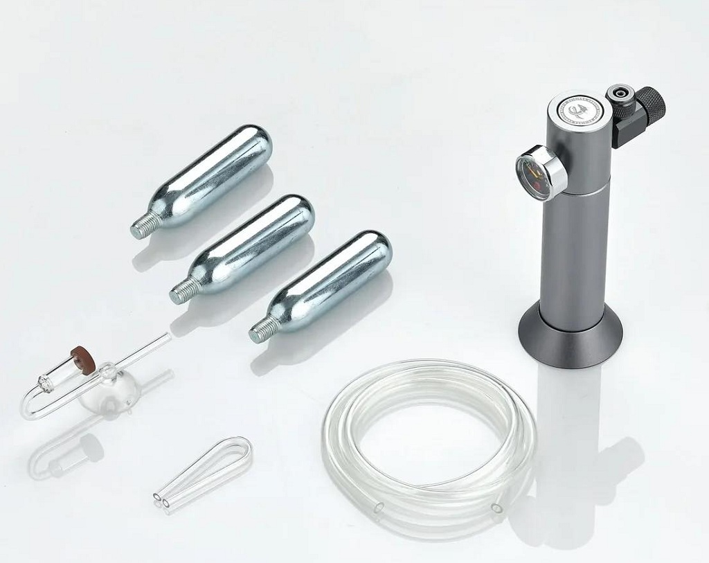 gồm 01 Mini CO2 Regulator, 03 bình CO2 Cartridge 16g, 01 Nano CO2 Diffuser S, 01 U Clip M 8 mm, 01 mét dây Air Hose