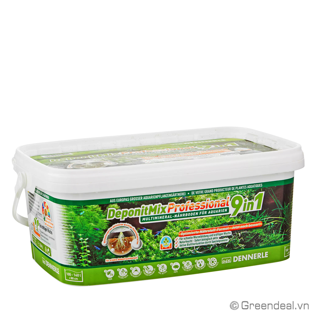 DENNERLE - Deponit Mix Professional 9 in 1 là cốt nền cho hồ thủy sinh giàu dinh dưỡng, được vườn ươm cây thủy sinh nổi tiếng thế giới là Dennerle sản xuất dựa trên kiến thức sâu rộng về môi trường sống tự nhiên của các loại cây.