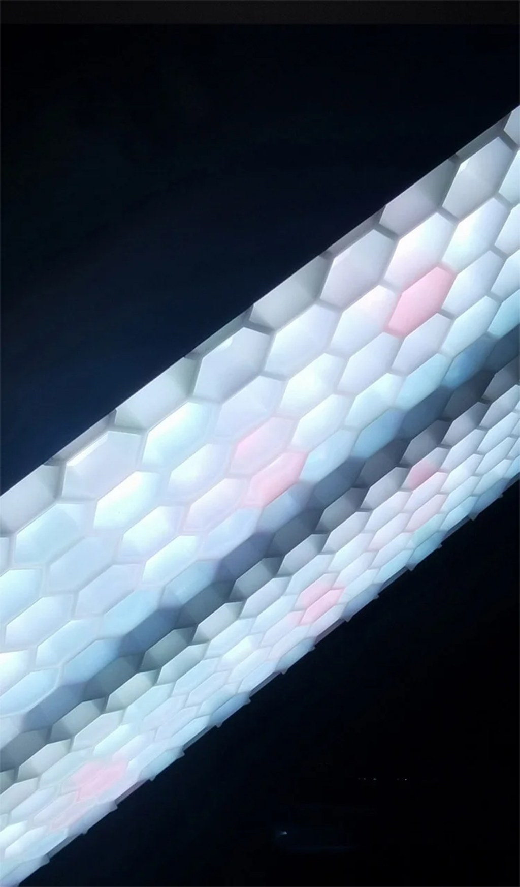 LEDSTAR - RGBW+FR Water Plant Light (AQ-X60) có khung nhựa khá độc đáo với hình dạng tổ ong phủ ốp lên mặt đèn, nhờ đó giảm được sự chói mắt khi nhìn quan sát hồ cá mà không cần sử dụng thêm bộ shade tản sáng như các dòng đèn khác.