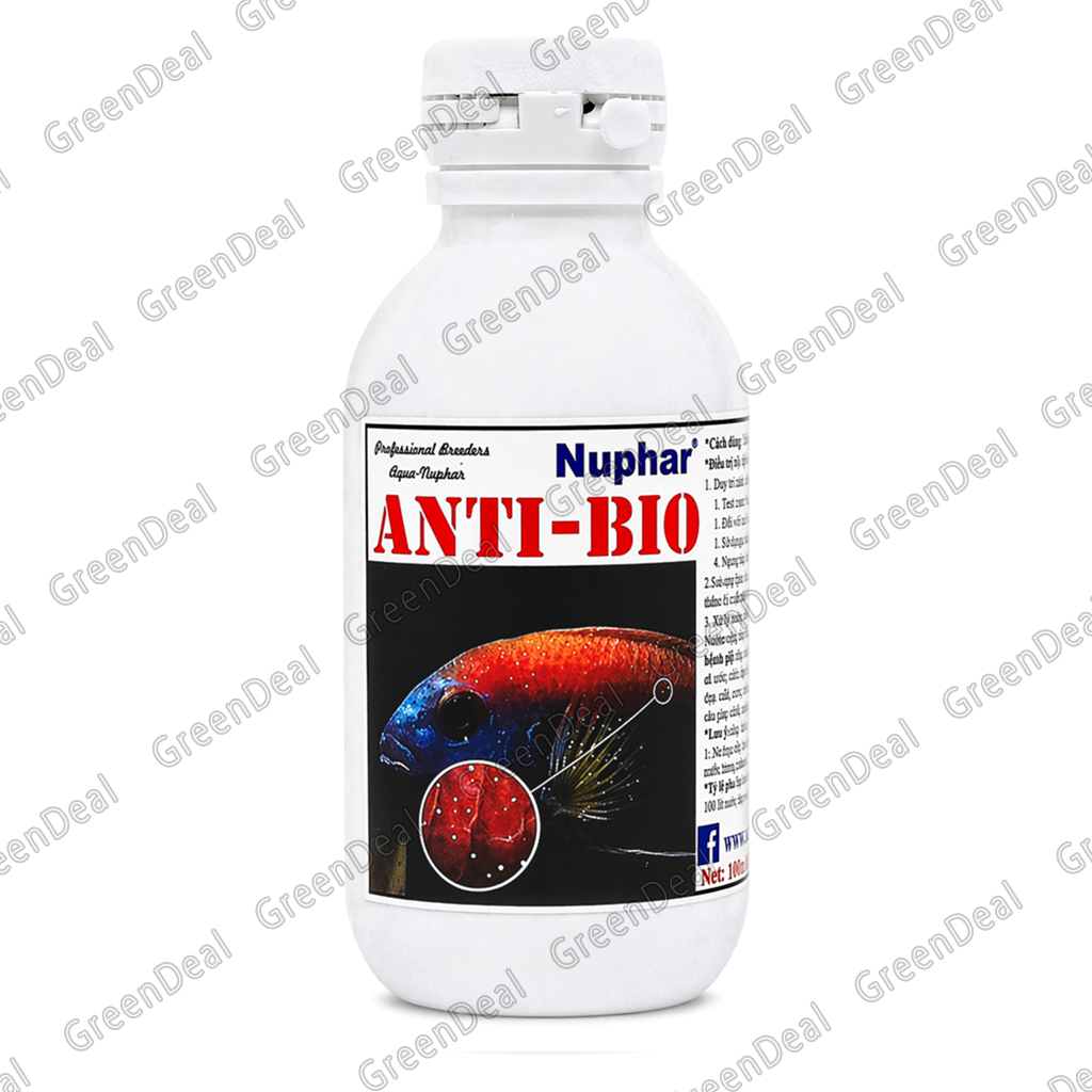 NUPHAR - Anti Bio giúp trị và xử lý các loại nấm trên cá cảnh như: nấm trắng li ti, cá cọ mình vào đá lũa, bơi lờ đờ, mất thăng bằng, mục đuôi, đục mắt, sưng miệng, xuất huyết