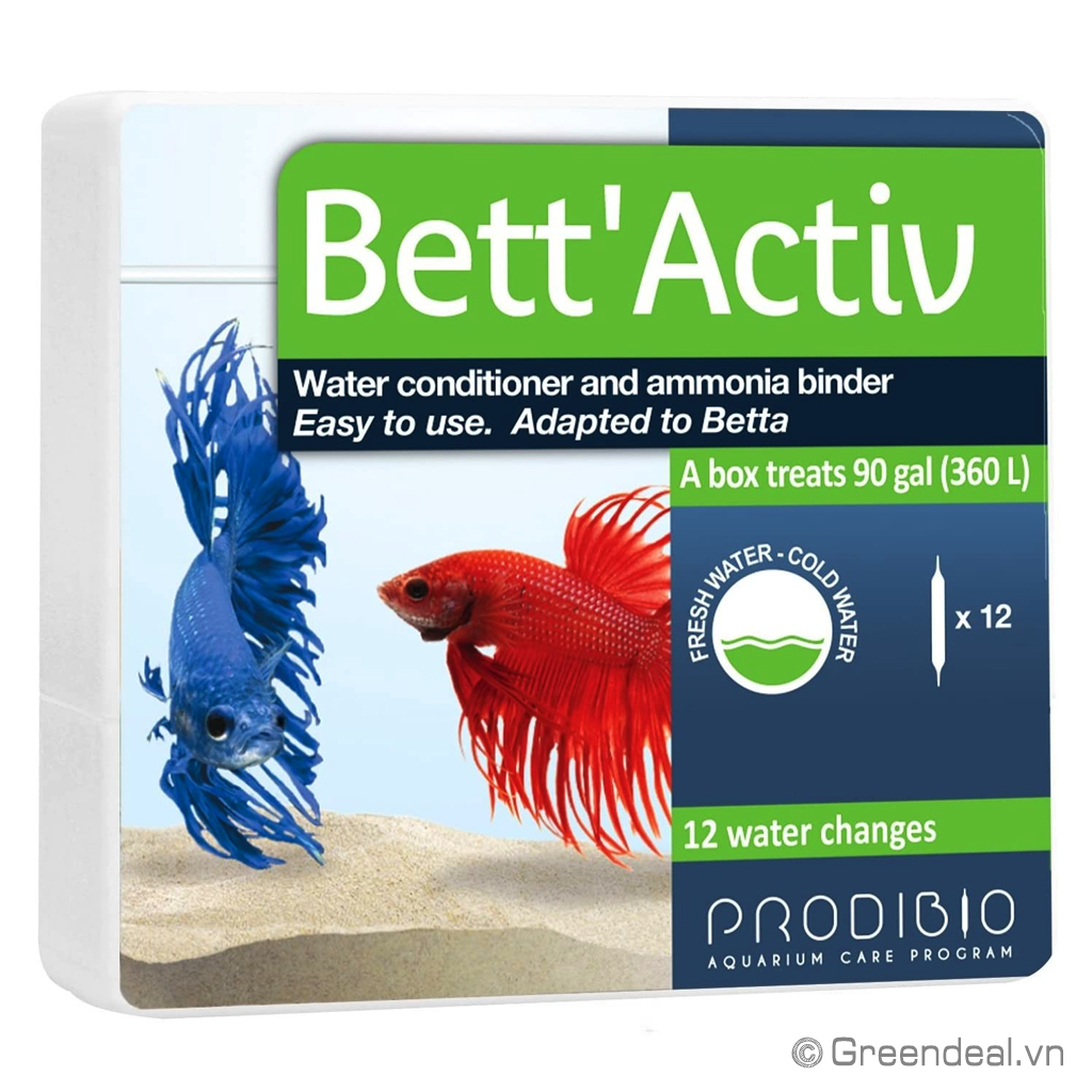 PRODIBIO - Bett'Activ là hợp chất điều hòa nước giúp loại bỏ các chất độc hại như Clo và Chloramine... có trong nước máy để cung cấp cho cá Betta một môi trường sống an toàn và khỏe mạnh.