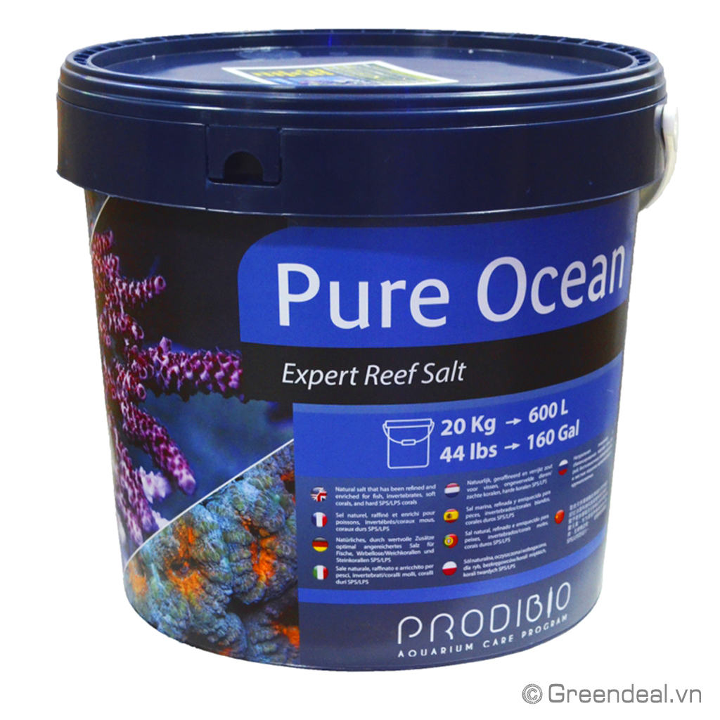 PRODIBIO - Pure Ocean Expert Reef Salt được tinh chế từ muối tự nhiên, được kiểm soát nghiêm ngặt về thành phần chất lượng và được bổ sung thêm các nguyên tố vi lượng, muối khoáng có độ tinh khiết và nồng độ rất cao như canxi, magiê... nhằm kích thích sự phát triển nhanh chóng của các với các loài động vật rạn san hô nhạy cảm hoặc đòi hỏi khắt khe về môi trường sống.
