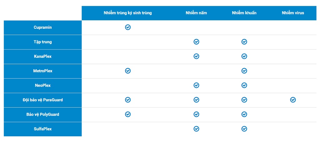 Sử dụng biểu đồ này như một hướng dẫn chung để lựa chọn thuốc phù hợp. Nhấp vào sản phẩm ở cột bên trái để biết thêm thông tin.