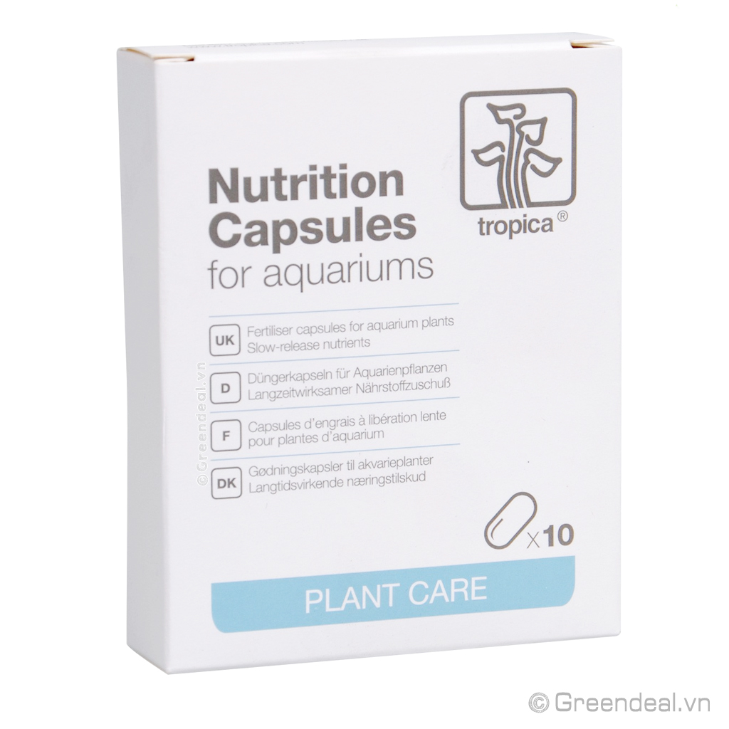 TROPICA - Nutrition Capsules là phân nhét cho hồ thủy sinh có dạng viên nang chứa Nitrogen, Phosphor, Sắt và Mangan, cũng như tất cả các chất dinh dưỡng vi lượng quan trọng giúp bổ sung dinh dưỡng cho cây trồng phát triển tối ưu.